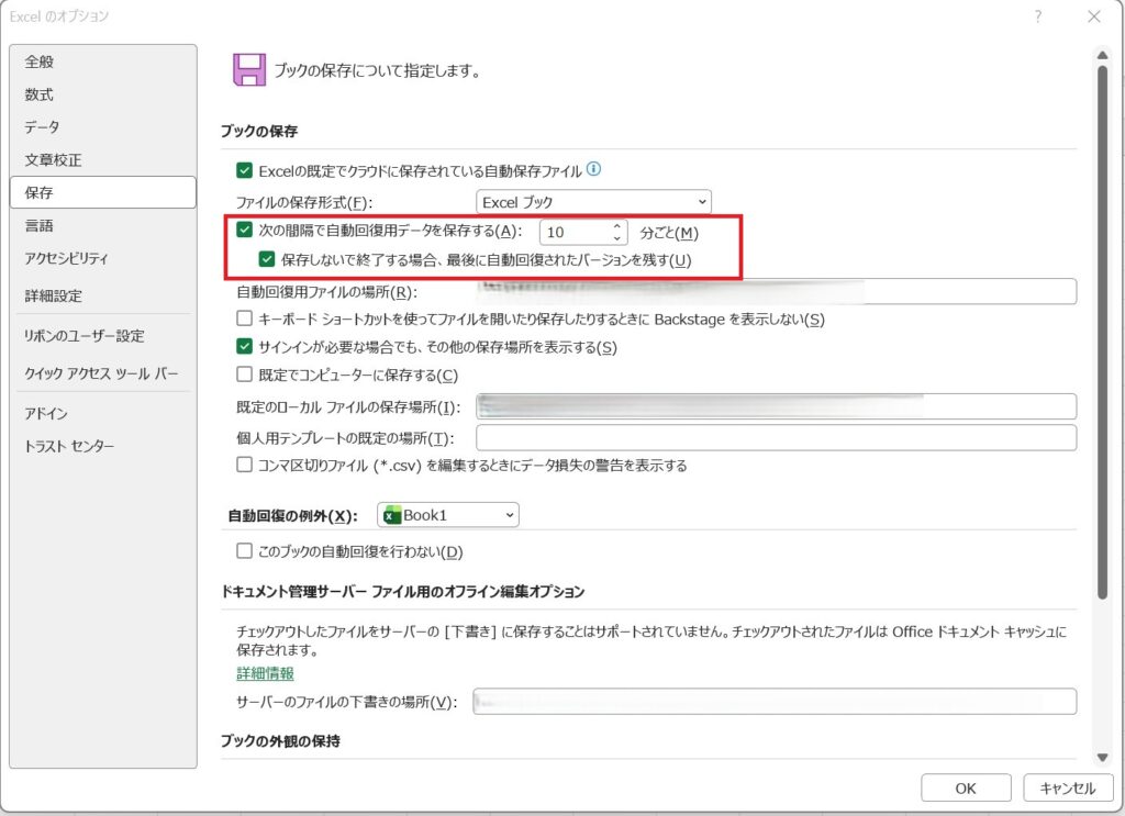 【解決方法4】自動保存の間隔を延ばす