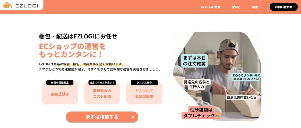 柔軟な発送業務のカスタマイズやサポート業務を提供しているEC発送代行サービスです。越境ECの物流代行や小ロットの物流代行にも対応しており、小規模なネットショップから海外展開を考えているネットショップまで幅広く利用できます。