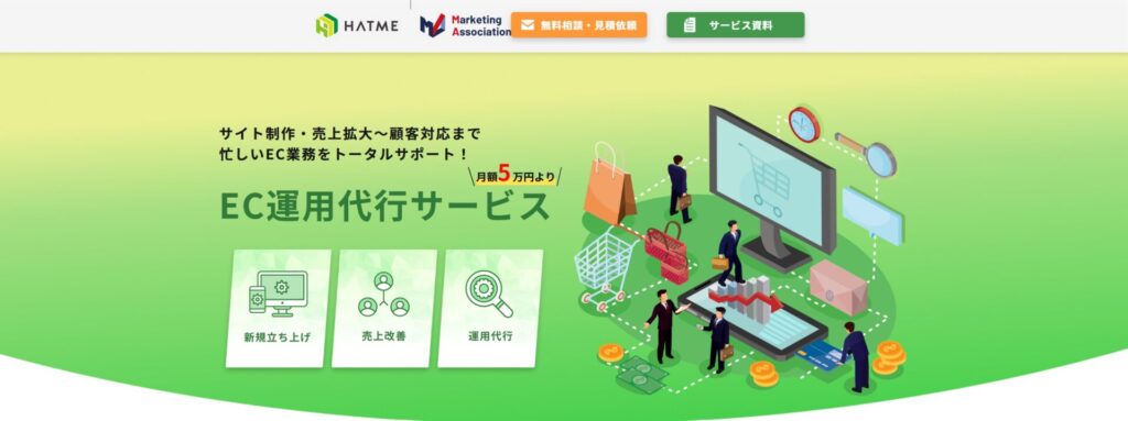 | サービス | 運用代行(ECサイト・モール更新、サイト保守、メルマガ運用、商品登録、受注処理、カスタマーサポート) | ECサイト制作、商品登録、カスタマーサポート、受発注処理、出荷処理・サポート、広告運用など | 商品撮影・編集、画像制作、商品登録、文字修正、サイト保守、操作方法の質問・レクチャーなど |