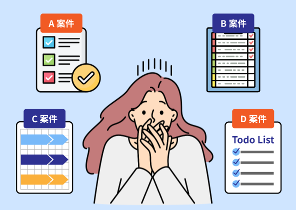 案件ごとにタスクが増え、スケジュール調整や連絡が追いつかない。