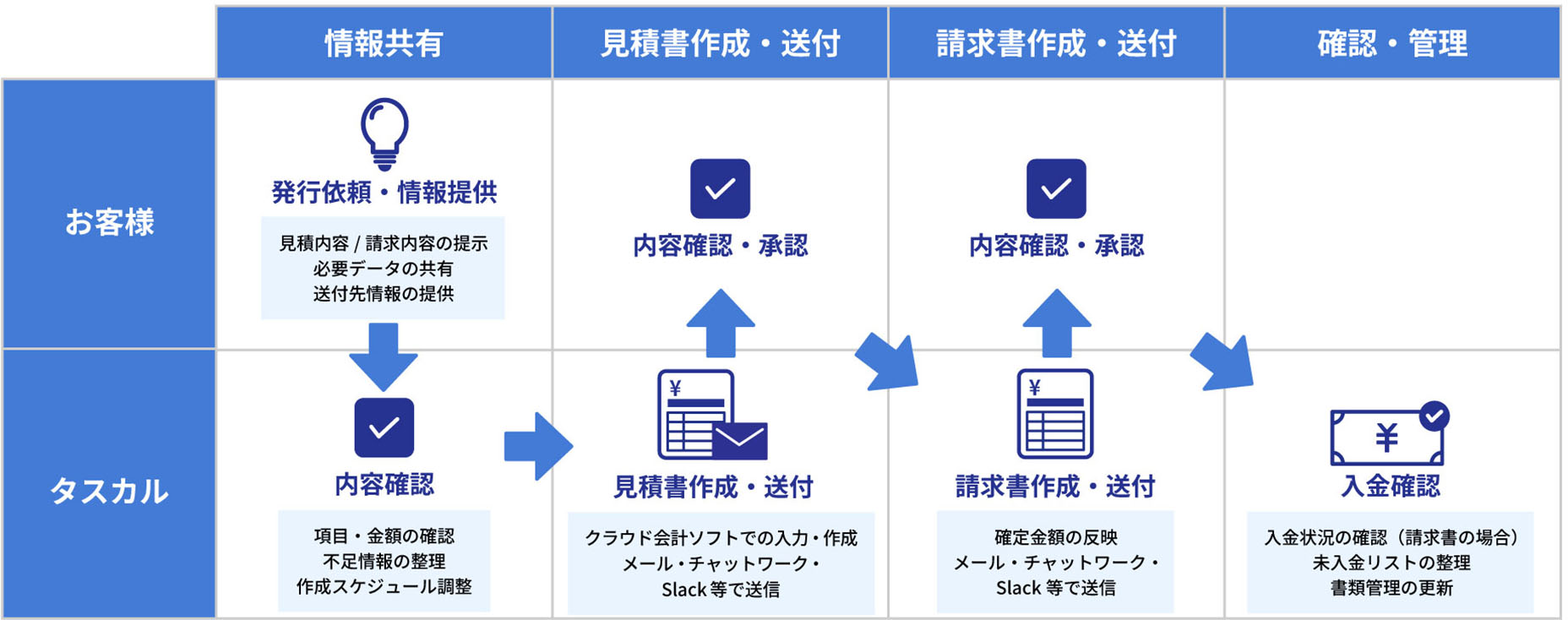 見積書・請求書の作成や発行、管理業務を代行し、経理まわりの