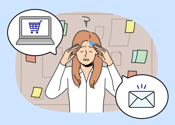 注文処理や問い合わせ対応に時間がかかり、他の業務が後回しになる。