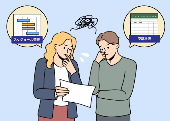 スケジュールや受講状況の管理が複雑で、確認作業に手間がかかる。