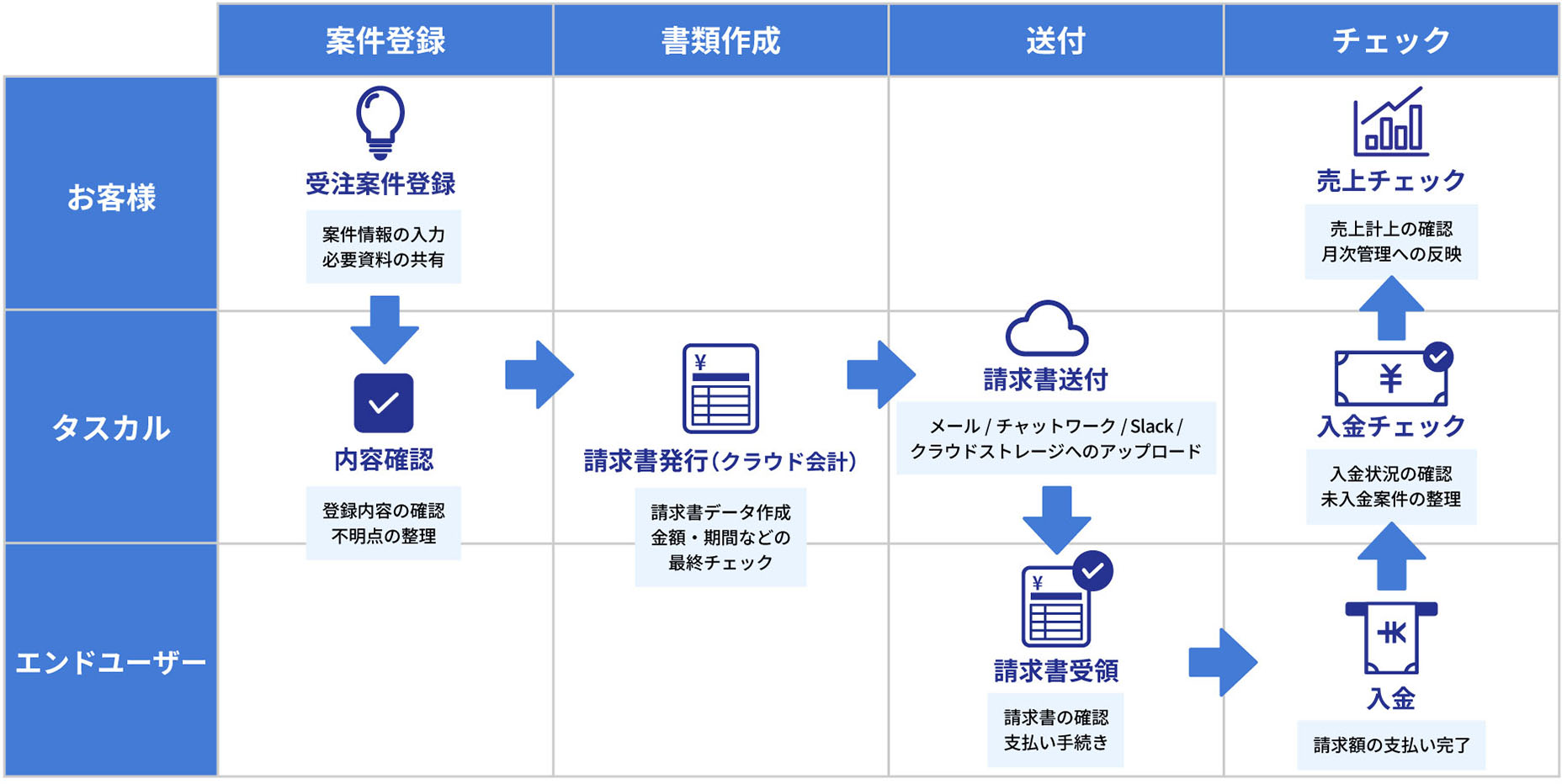 受注登録から請求処理までを丁寧に代行し、月次業務の抜け漏れ防止と
